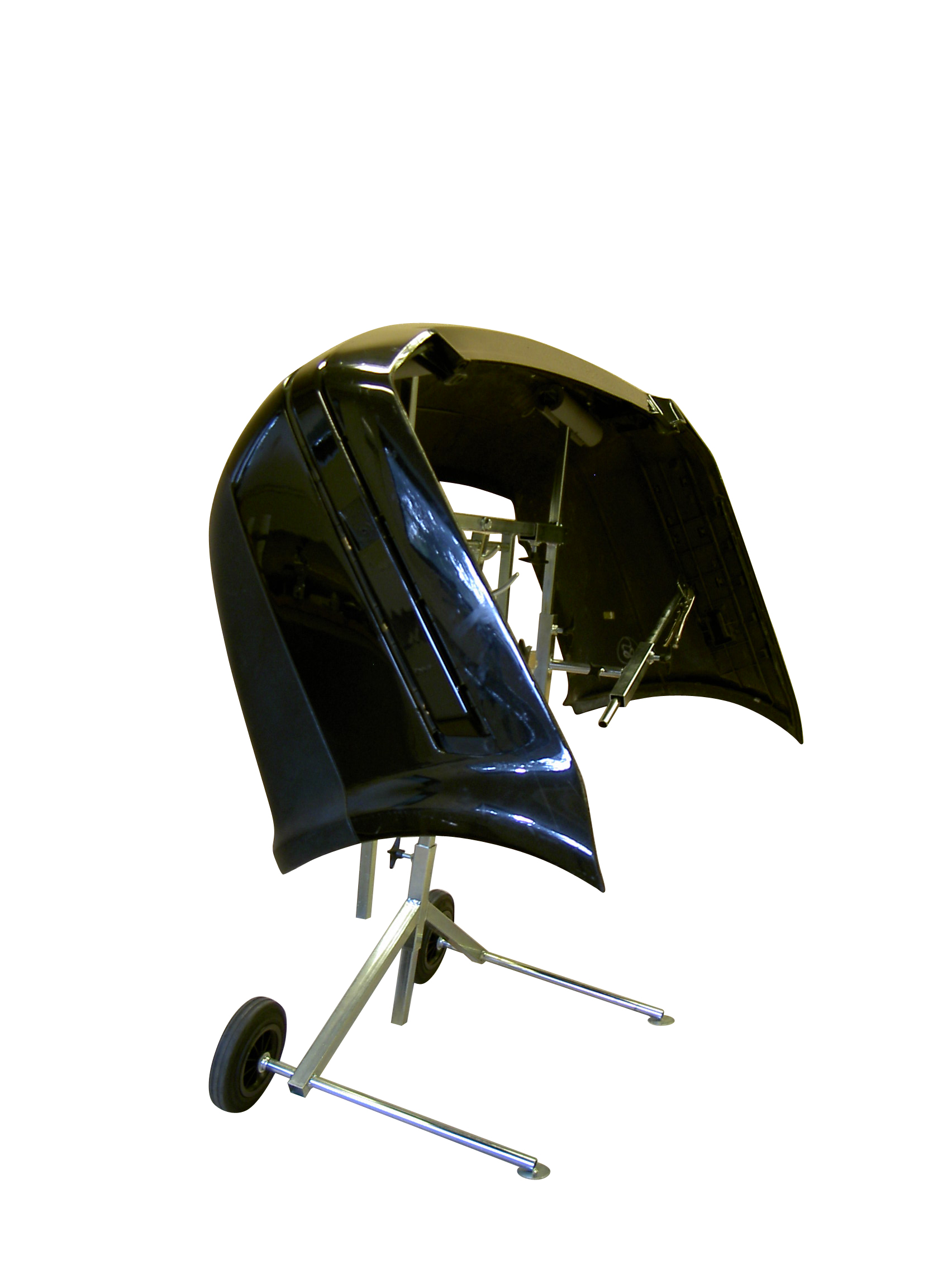 Tento stojan umožňuje umístit nárazník pod stejným úhlem jako na autě, což dává malířům příležitost nalakovat spodní hranu a dosáhnout tak nejlepšího výsledku.